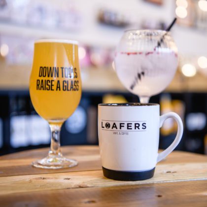 Vinyl records, art, coffee, craft ales, wines, spirits and snacks, and live music events.
