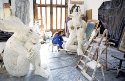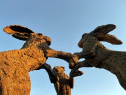The exhibition will consist of the following pieces: Dancing Hares (bronze); The Minotaur and The Hare on Bench (bronze); Torsos (Lady Hare and Minotaur) (galvanised steel wire); Crawling (bronze); Girl with Knees Up (bronze); Ladyhare on Boar on a Barrel.