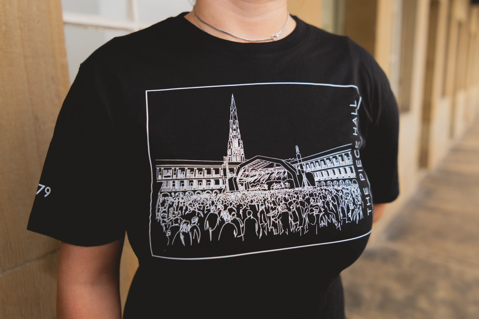 Been to Live at The Piece Hall? Now you can buy the T-Shirt! This limited edition souvenir run of exclusive Piece Hall T shirts celebrates the legendary gigs which have taken place in our iconic courtyard. Front features design, back is plain with the year of our opening 1779 on each sleeve.